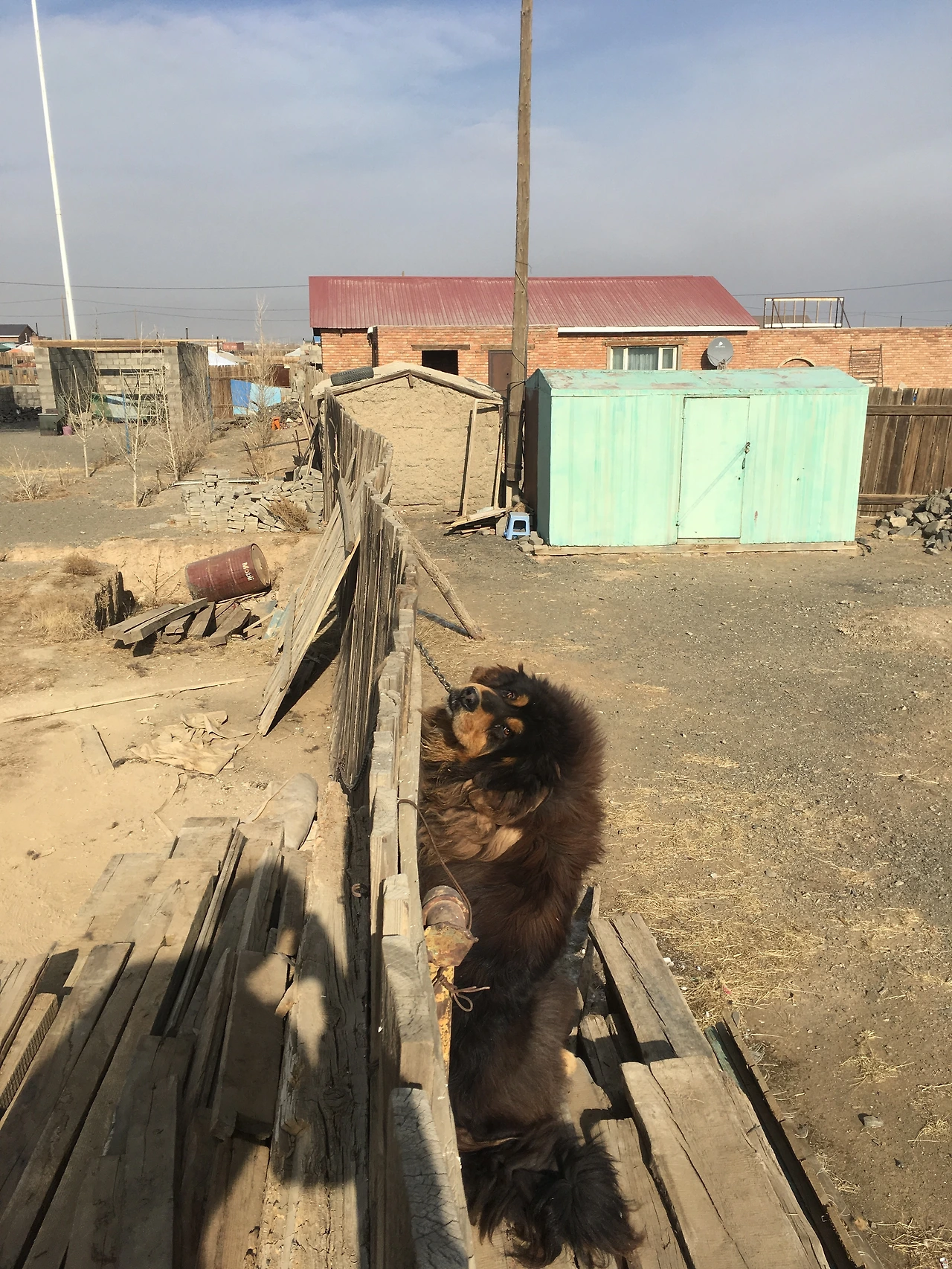 산책을 위한 발걸음은 한순간에 생존을 위한 걸음으로 변해버렸다. 오직 한 가지 힌트라면 이든의 집 앞마당에 키우는 강아지인 도치를 찾는 것이다. 서둘러 사탕을 가져오기 위해 끝겨울의 몽골의 칼바람에 남방 하나로 맞서 싸우며 모든 길을 'ㄹ'자 걷고 걸었다. 잠깐 걸으려고 남방만 걸치고 나온 탓에 드센 바람은 아우토반 위를 달리듯 체크무늬 남방 사이를 드나들며 나의 피부를 맹렬히 지나갔다. 냉혹한 계절의 살기마저 느껴지는 순간이었다. 그리고 마른 모래를 싣고 오는 건조한 바람으로 인해 입술은 마른 메주짝처럼 듬성듬성 갈라지고 콧구멍에는 까슬까슬한 모래 알갱이들이 이리저리 뒹굴고 있었다. 풍성하게 산란하는 햇빛이 나를 비추었지만 살갗을 때리는 추운 바람 앞에서는 그마저도 무용지물이었다.