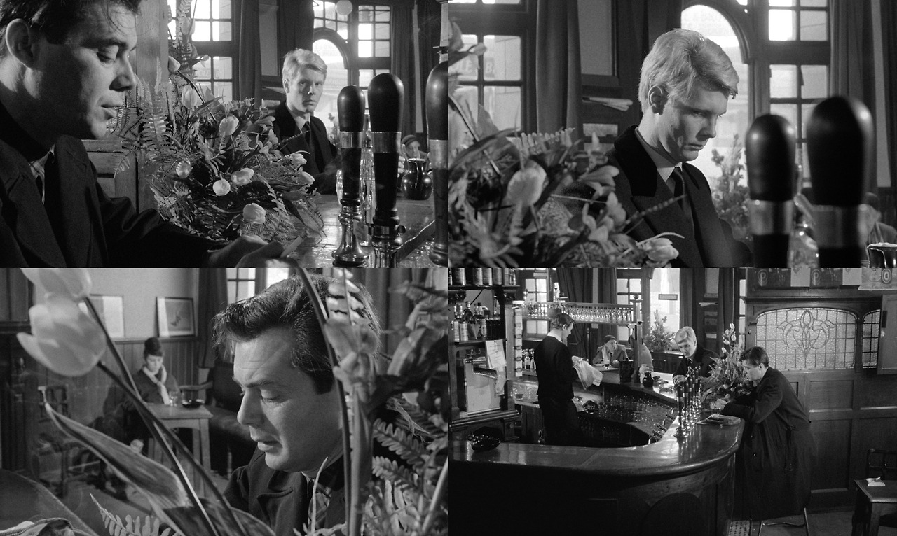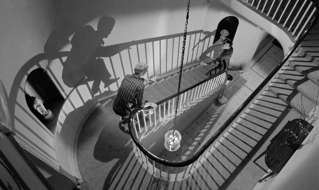 전술한 것처럼 배럿은 사실 토니의 재산을 강탈하기 위해서 이 집에 들어왔다. 그렇다면 응당 배럿이 그 목적을 달성한 순간 영화는 결말을 향해 나아가야 할 것이나 러닝타임은 아직 30분이 더 남았다. 그리고 '도대체 더 할 게 뭐가 있지' 생각으로 의아해지는 순간 <하인>은 일단 퇴장했던 배럿을 다시 극으로 복귀시키고 그로부터 한 단계 더 높은 곳으로 도약해 버린다. 토니의 집에서 도망쳤던 배럿은 바에 있던 토니에게 다가가 자신은 그저 여자에게 속은 희생자일 뿐이며 다시 한 번 토니의 집에서 일할 수 있는 기회를 달라고 읍소한다. 하지만 관객은 토니의 말이 거짓임을 직관적으로 알 수 있다. 감독이 180도 법칙을 아주 은밀하게, 그럼에도 매우 효과적으로 깨 버렸기 때문이다.