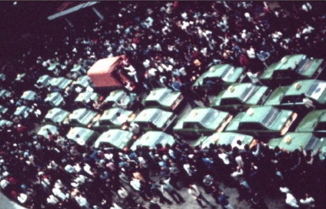 200여 대의 택시가 줄지어 계엄군을 향하는 모습.