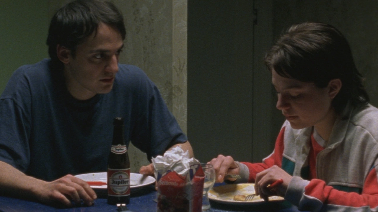 로제타가 식탁에 앉아서 음식을 먹는 단 하나의 장면이 있다. 와플 가게에서 알게 된 아르바이트생의 집에서 저 녁식사를 하는 장면. 그 남자는 갑자기 음악을 틀어주고 춤을 추자고 말한다. 이 순간이 바로, 이 영화에서 유일하게 음악이 흘러나오는 때이다.