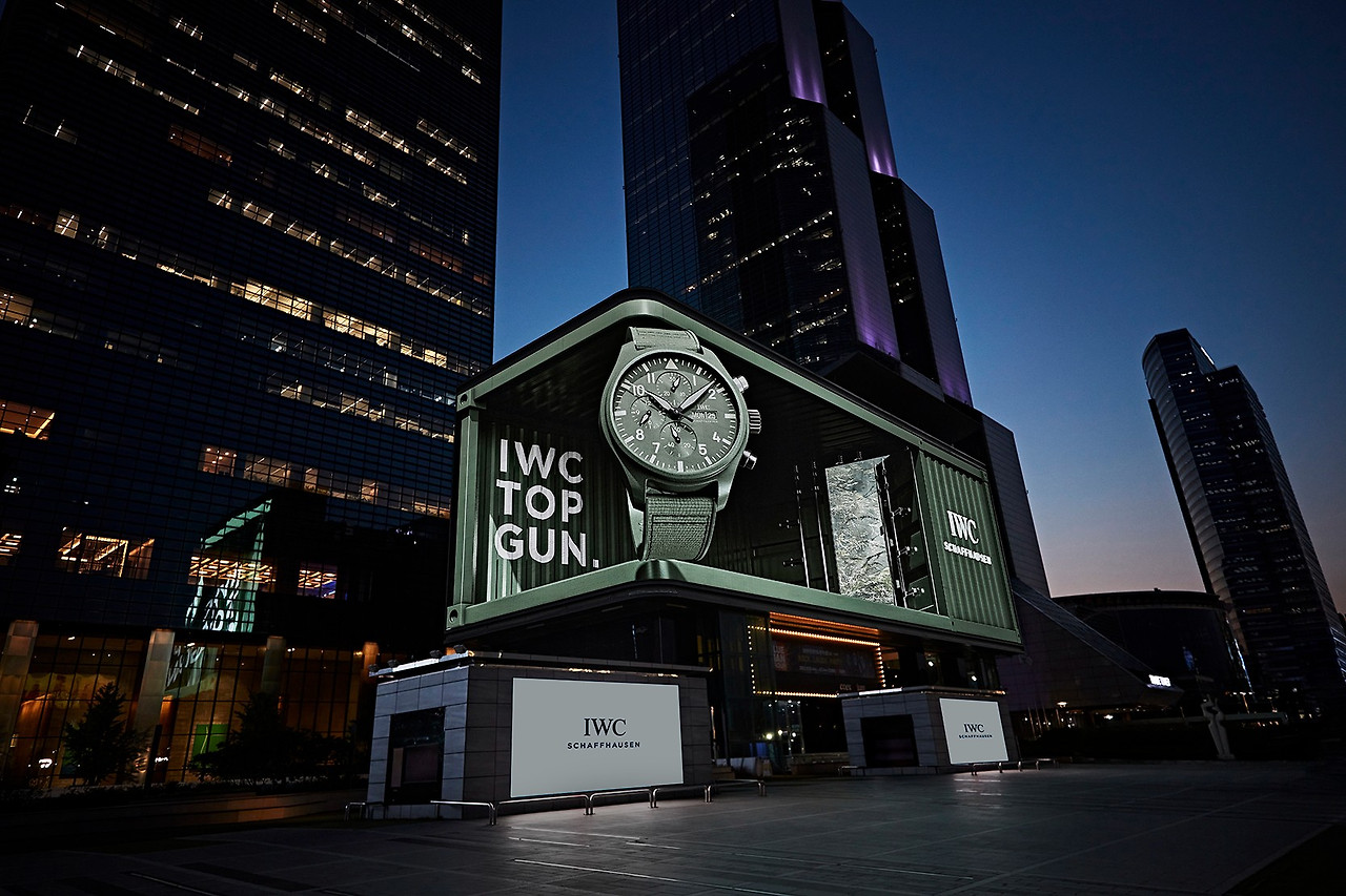 IWC 샤프하우젠이 2022년 파일럿 워치 크로노그래프 탑건 라인에 새롭게 추가된 ‘우드랜드’와 ‘레이크 타호’ 에디션을 테마로 한 3D 형식의 캠페인 <아웃 오브 더 박스(Out of the Box)>를 한국에서 최초로 공개했다. 이번 캠페인은 서울 삼성동에 위치한 K-POP 스퀘어의 대형 스크린을 통해 송출된다. 이 같은 독창적인 광고 캠페인은 2021년 런던의 피카딜리와 뉴욕의 타임스퀘어 등 세계 각국에서 진행되기도 했다.