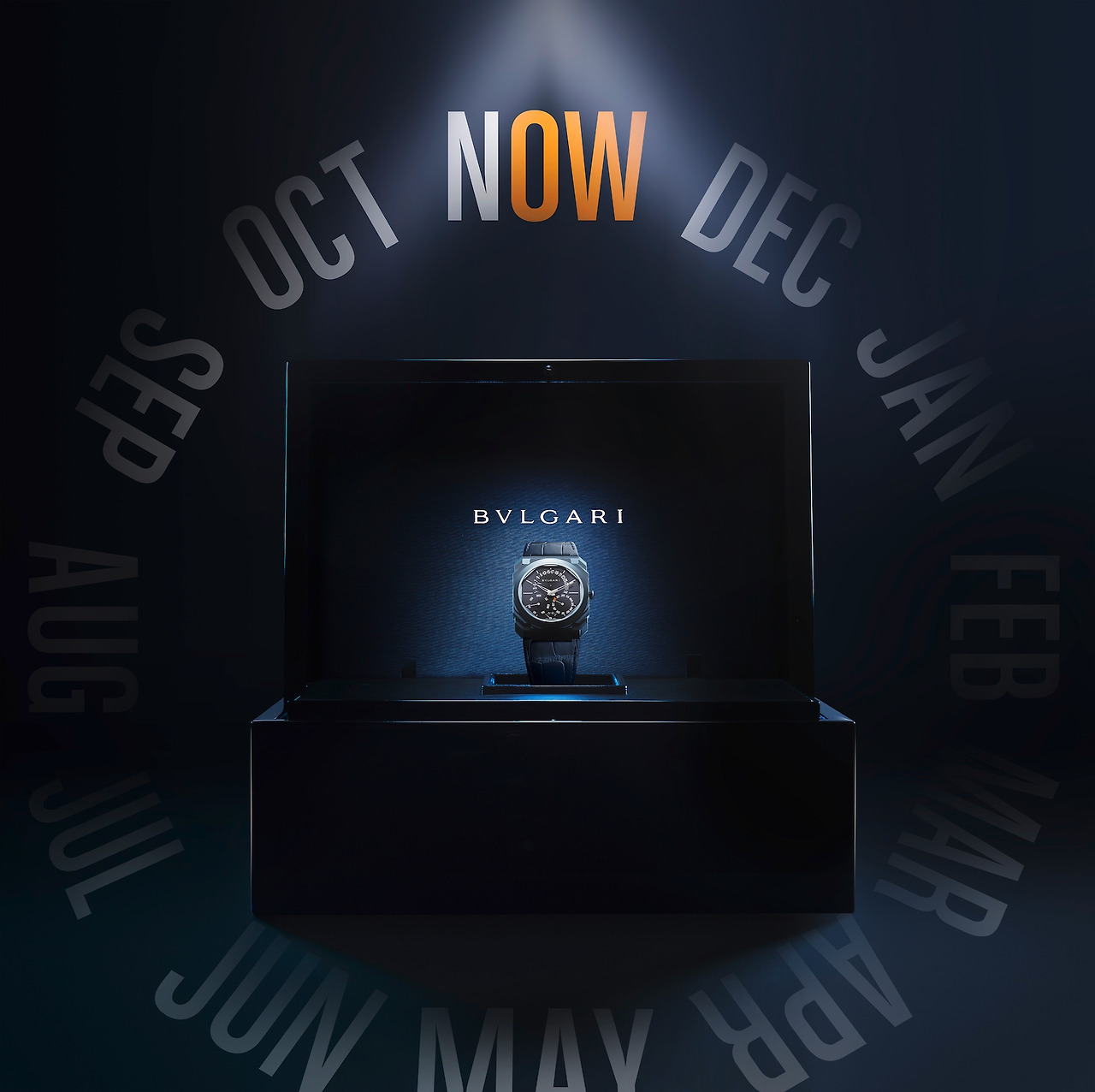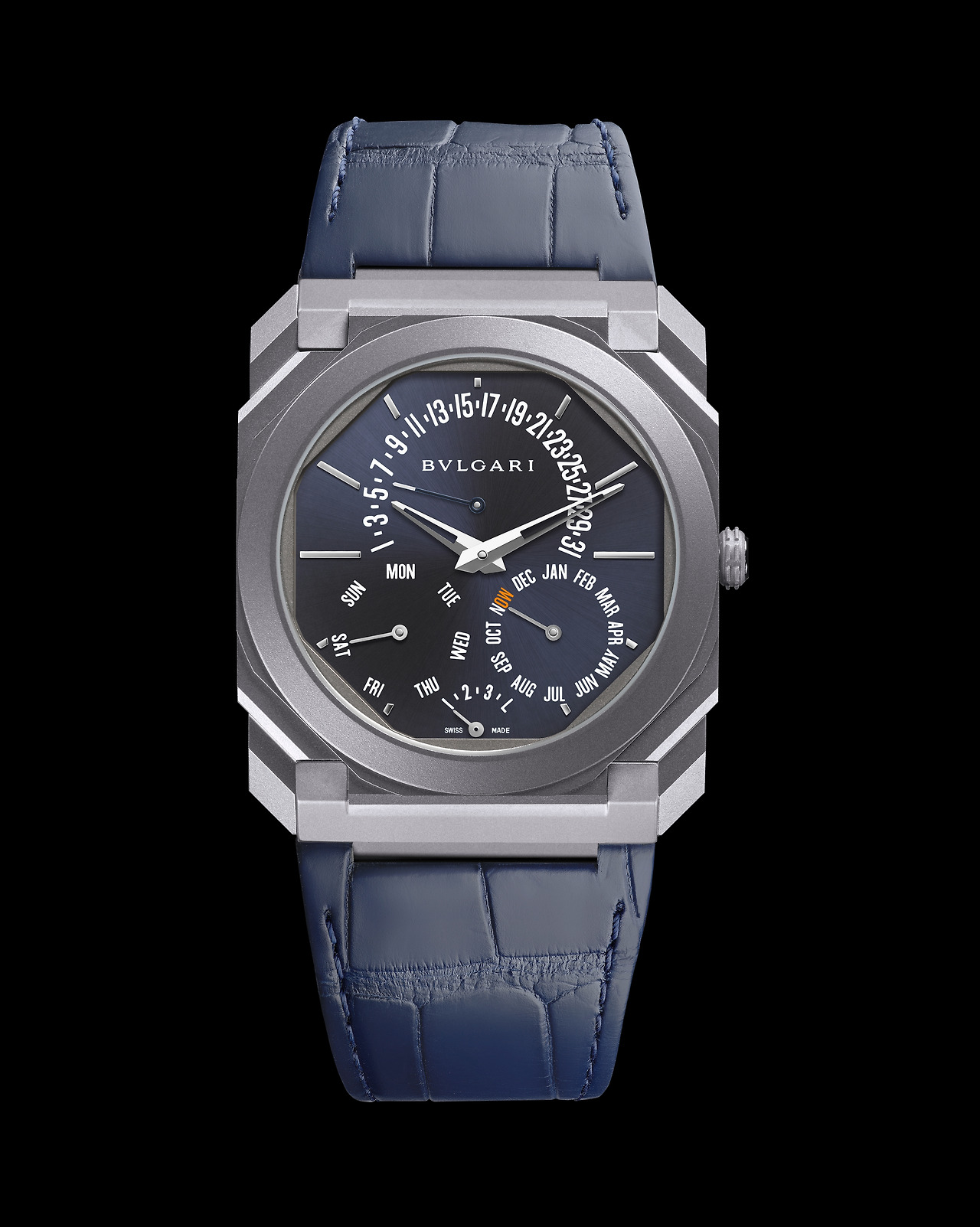 . 올해 세계에서 가장 얇은 기계식 퍼페추얼 캘린더 시계인 ‘옥토 피니씨모 퍼페추얼 캘린더’를 선보인 불가리는 매우 희귀한 금속 중 하나인 탄탈륨 소재의 케이스와 딥 블루 다이얼이 돋보이는 온리워치 에디션을 공개했다. 4시 방향에 자리한 월 인디케이터의 11월 표기에만 온리워치의 약자인 ‘OW’를 오렌지 컬러로 포인트를 주었고, 백 케이스에도 오렌지색으로 온리워치를 새겼다.