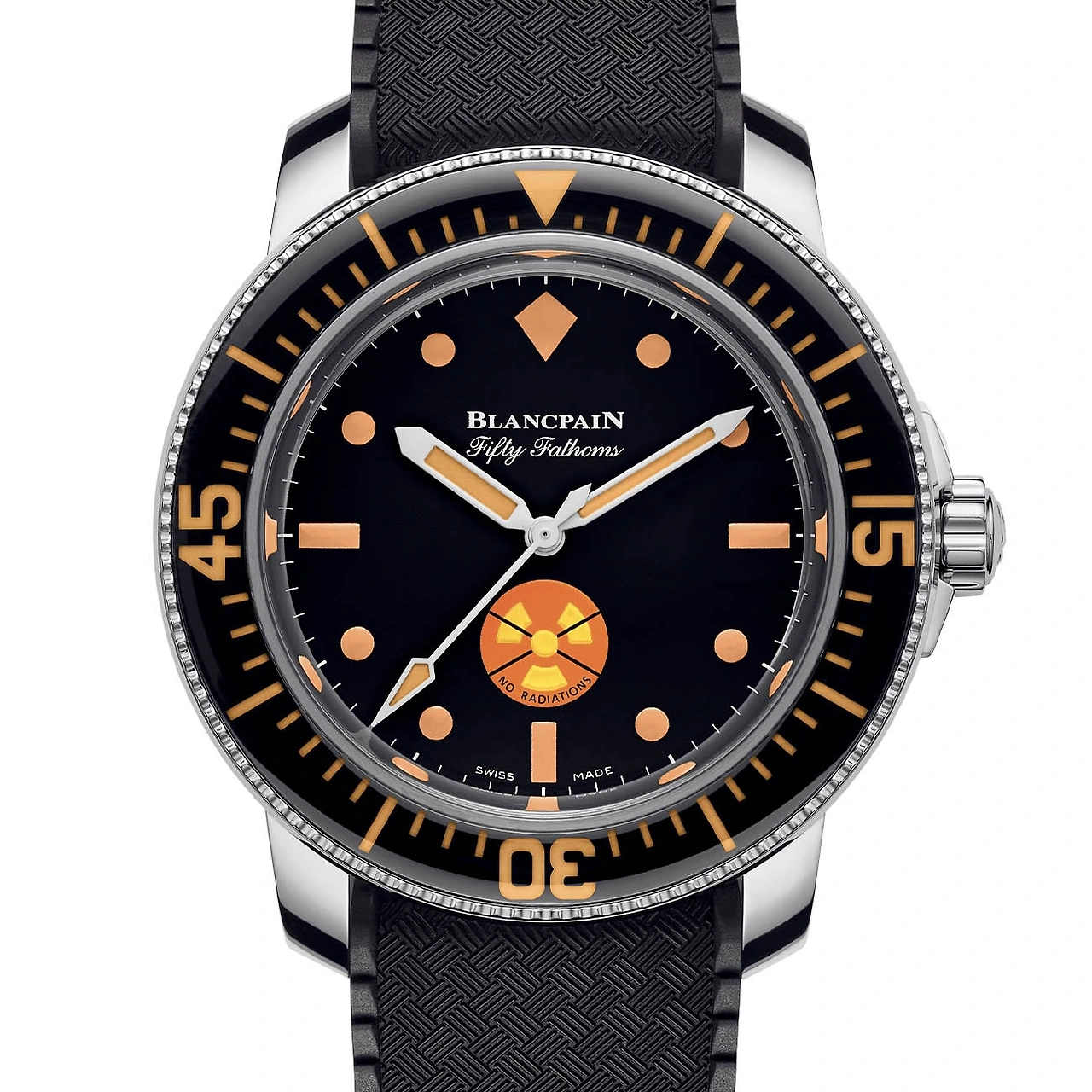 블랑팡은 지난봄에 선보인 ‘트리뷰트 투 피프티 패덤즈 노 래드’에서 컬러 코드를 온리워치를 상징하는 오렌지 컬러로 변형한 온리워치를 출품했다. 특히 6시 방향의 옐로와 레드의 노 래드 로고가 각각 오렌지와 옐로로 대체되었다.