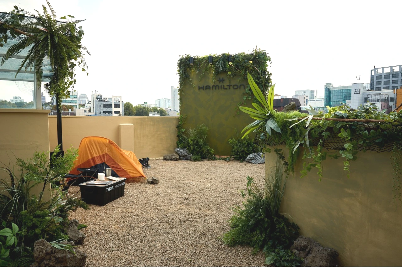 해밀턴의 특별한 팝업 스토어는 아웃도어 액티비티를 즐기는 현대 모험가들을 위해 탄생한 카키 필드 익스페디션 워치가 품은 강력한 아이덴티티를 경험할 수 있는 공간으로 완성되었다. 파사드는 그린 컬러로 완성하고, 총 3개의 층으로 구성된 내부 공간에는 각기 다른 사이즈와 종류의 식물을 배치하며 마치 장엄한 숲 속으로 탐험을 떠나는 듯한 분위기를 연출해냈다.