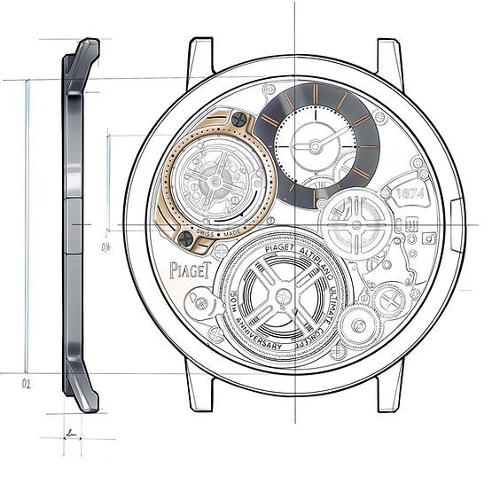 2018년 1월에 열린 SIHH에서 피아제는 두께가 2mm에 불과한 ‘피아제 알티플라노 울티메이트 컨셉’을 선보이며 모두를 놀라게 했다. 무브먼트와 케이스를 구분하지 않고 백 케이스가 무브먼트의 메인 플레이트 역할을 함께 수행하도록 제작된 두께 2mm의 이 시계는 출시 당시에는 콘셉트 워치였지만 2년 만에 상용화에 성공했다. 그 결과 2020년 GPHG에서 최고상인 에귀유 도르를 거머쥐며 기술의 탁월함을 인정받았다.