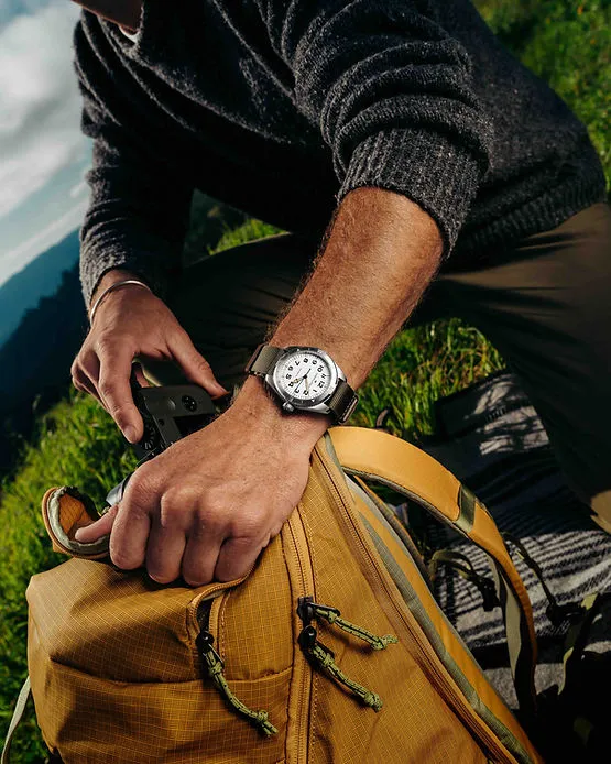 올해 새롭게 공개한 카키 필드 익스페디션 모델은 직경 37mm와 41mm 등 2가지 사이즈로 만나볼 수 있다. 케이스는 모두 브러싱 처리한 스테인리스 스틸로 제작하고, 양방향으로 회전하는 컴퍼스 베젤에는 동, 서, 남, 북 등의 방향을 표시하는 스케일을 새겨넣었다. 또한 기존 모델과 동일하게 스크루-다운 방식의 크라운을 장착하며 최대 수심 100m의 방수 성능도 확보하며 장대한 탐험부터 일상적인 액티비티에 이르는 여정을 함께할 수 있는 타임피스를 제작해냈다.