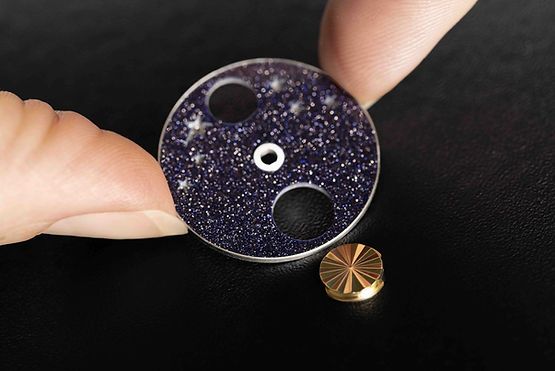 무라노 어벤추린 글라스를 이용해 광활한 우주를 펼쳐놓은 듯한 디자인으로 완성한 다이얼은 24시간마다 한 번씩 회전하며, 그 위에 세팅해놓은 별과 달, 태양 등이 분위기를 더한다. 태양은 스노 세팅 옐로 사파이어나 기요셰 옐로 골드로 표현하고, 달과 별은 다이아몬드로 장식했다.