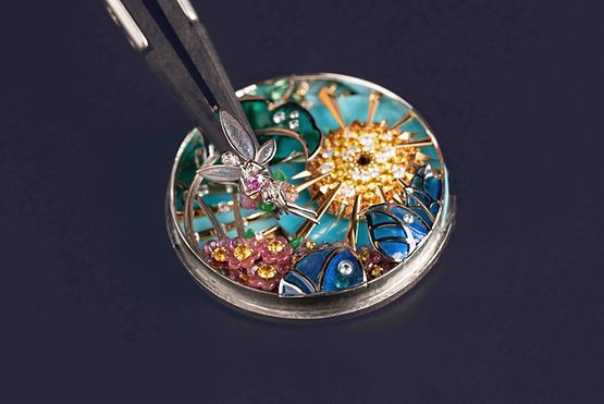 화이트 골드 소재를 사용해 수공으로 세심히 조각한 페미닌 피겨는 플리카주르 에나멜로 투명하게 표현한 날개를 펼치며 매혹적인 아름다움을 드러낸다. 하늘은 터쿼이즈가 지닌 오묘한 3가지 뉘앙스를 담아 완성하고, 태양은 스페사르타이트 가넷과 컬러 사파이어, 다이아몬드 등이 펼쳐내는 눈부신 광채로 표현했다. 앞면에 이어 케이스 뒷면에서도 인그레이빙 기법으로 표현한 요정의 비행을 감상할 수 있는 이 작품은 2년의 개발 기간과 함께 다이얼 조립에만 180시간이 소요되었다.