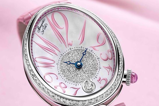 지난 3월 8일에 세계 여성의 날을 기념해 민트 컬러의 레인 드 네이플을 선보여 큰 화제를 모았던 브레게가 파스텔 핑크 컬러를 적용한 레인 드 네이플 8915를 공개했다. 이 시계는 컬렉션의 상징적인 타원형 케이스를 화이트 골드로 제작하고 베젤에는 53개의 브릴리언트 컷 다이아몬드를, 내부 플랜지에는 82개의 브릴리언트 컷 핑크 사파이어를 우아하게 세팅했다. 화이트 머더 오브 펄 소재의 다이얼은 스노우 세팅 기법으로 121개의 다이아몬드를 장식한 챕터링과 아브라함-루이 브레게가 개발한 포켓워치에서 영감을 받은 블랙 미닛 트랙이 눈길을 사로잡는다.