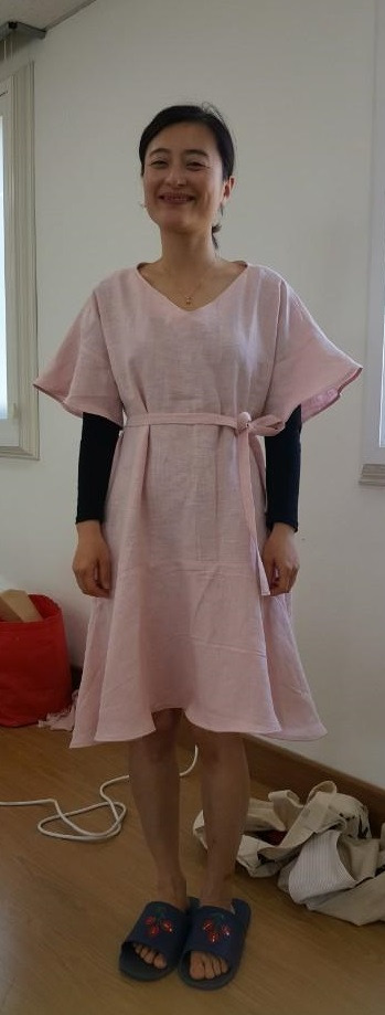 튜닉 원피스와 프릴 원피스는 집에 와서도 서너 번 만들어 보았다. 적어도 나 혼자서 두 번은 만들어봐야 그 과정이 머릿속에 들어갔다. 처음보다 두 번째가, 두 번째보다는 세 번째가 더 빠르고 정확하게 만들어졌다. 원단을 달리하면 같은 디자인이라도 느낌이 달랐다. 허리선이나 기장을 달리해도 다른 옷처럼 느껴졌다. 특히 원피스의 치마 부분을 생략하면 블라우스가 되는 것이 신기했다. 원피스와 블라우스를 다른 기장, 다른 원단으로 서너 번만 복습하니 여러 벌이 만들어졌다.