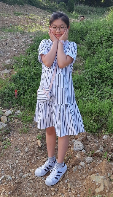 옷을 입은 서연이를 데리고 밖으로 나왔다. 흰 바탕에 남색 스트라이프 무늬가 있어 초록과 어울릴 것 같아 나무와 풀이 있는 곳으로 데리고 갔다. 엄마는 디자이너이자 사진작가고 서연이는 모델이었다. 온종일 옷 만드느라 밥도 대충 먹으며 재봉틀 앞에 앉아 있었지만, 서연이가 입고 있는 모습을 보니 그런 것은 아무렇지 않았다.