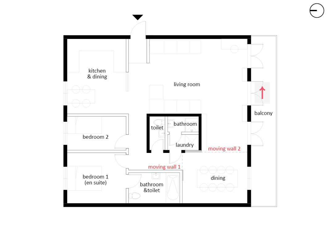 처음 리니아 집에 도착해서 평면이 정사각형이라고 생각하지 못했던 건 도면 오른쪽 아래 코너에 위치 한 무빙월이 있는 다이닝 룸 때문이었다. 저 벽은 저녁엔 닫혀있고 아침엔 열리는 마법의 문이었다. 적어도 나에겐 그랬다. 그래서 리니아 부모님이 'bedroom 2'로 나를 안내해 주시고 샤워실을 보여주실 때 '닫혀 있던' 저 '방'에서 리니아가 자겠구나 했던 것이다. 그러나 다음 날 아침엔 그 방이 감쪽같이 사라져 있었다. 건축을 전공한 후에 어떤 건물에 들어가면 대충의 평면도가 머릿속에 그려지는 데 아침에 화장실에 갔다 나오는 데 그 도면 중 방 하나가 사라져 너무 당황스러웠다.