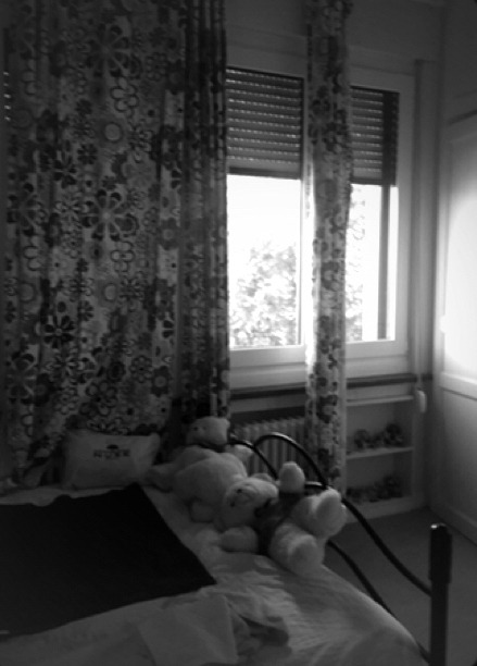2층의 외부 창에도 외부 블라인드가 모든 남향의 창에 설치되어 있었다. 이 높은 천장과 길고 좁은 창의 외부 블라인드를 비올렛이 다 닫아줬다. 아침까지 푹 잘 수 있게 말이다. 창 아래에 난 깊지 않은 선반에는 아기자기한 소품들이 전시되어 있다. 높은 천장에서 길게 드리운 커튼들은 일부러 창 크기보다 크게 제작되어 한 벽을 온통 덮을 수 있게 장식되어 있다. 장난꾸러기 같은 막내 같은 귀여운 비올렛과, 실크 스카프를 청바지 벨트로 묶어 쓰는 멋진 비올렛 모두를 볼 수 있는 곳이다. 나는 그의 방에서 잠깐 비올렛이 되는 상상을 해 봤다. 그러나 다음 날 다시 5명이 함께 하나의 화장실을 공유하는, 런던의 집으로 돌아갈 것을 생각하면 조금 울적해졌으므로 그런 상상은 금방 그만두었다.