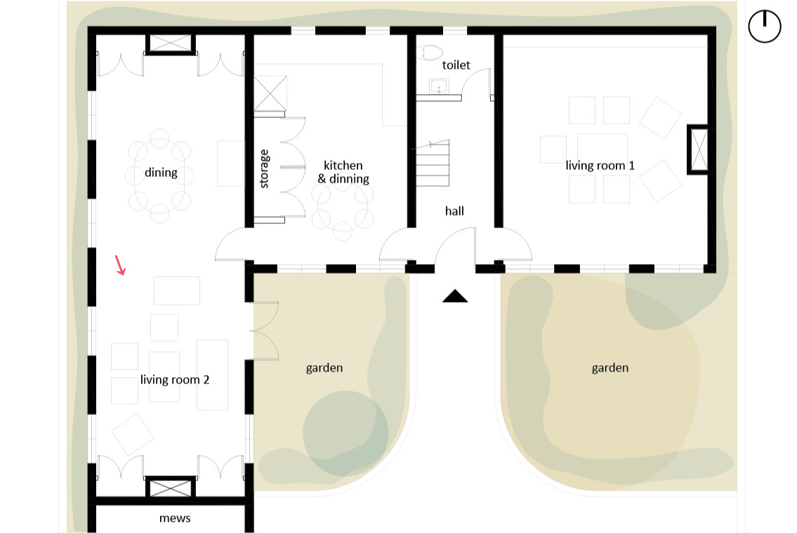오래 전 릴이 벨기에에 속해 있을 때 만들어진 이 집은 큰 공사 없이 대대손손 자식들이 보존하여 쓴 저택이었다. 그래서 벽난로뿐만 아니라 마구간(Mews) 자리도 그대로 남아있었다. 큰 앞마당을 지나 들어 서면 양쪽으로 잘 정돈된 정원이 있고 정원사이로 현관 문이 나타난다. 오른쪽에 큰 거실, 왼쪽으로는 아름다운 주방을 지나면 조금 더 사적인 두 번째 거실이 광활하게(정말) 나타난다.