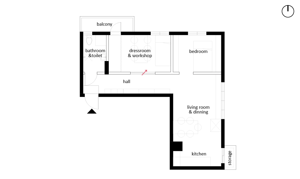 또한 미현과 정우는 이 집에 새 식구 고양이 '꼬마'를 모셔왔다. 임시로 보호했던 꼬마를 잊을 수 없었던 둘은 밤마다 꼬마를 그리워하다가 이 집으로 이사 오게 되면서 꼭 꼬마가 여기에 있어야 한다고 확신했다. 몸을 둥그렇게 만든 털 보숭이가 창 밖을 바라보고 있고, 또 따뜻한 그 모습을 매일 볼 수 있을 때 비로소 완전해지는 집 같았다. 꼬마와 함께 자고 싶어, 조용하고 어두운 잠자는 방(bedroom)과 옷과 둘의 취미생활을 모아 놓은 옷방 겸 서재(dressroom&workshop)를 따로 지정했다. 잠자는 방에는, 자는 사람과 동물, 수면에 필요한 것 말고는 아무것도 들어올 수 없었고 이 방에 들어오지 못한 세간은 모두 옆방, 옷방 겸 서재로 들어갔다. 이를 테면 밝고 시끄러운, 사실은 거의 모든 것들 말이다.