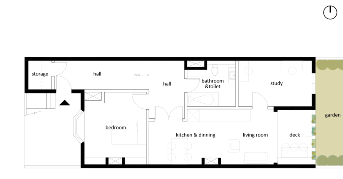 지하라고? 내가 처음 서울에서 혼자 지냈던 성북동의 반지하 반전세 집이 떠올랐다. 그 집에는 화장실로 곤충들이 심심찮게 들어왔다. 화장실 창문이 지면에서 채 10cm도 올라와 있지 않았기 때문이다. 그러나 런던의 '지하'는 이것과는 조금 다르다. 외벽이 지면에서 2-3m는 떨어져 있기 때문에 지하 같은 느낌이 거의 들지 않는다. 거기다 데크와 정원이 연결되어 있다면? 이 집은 지하층이라고 말하기에는 너무 환하고 청명 상쾌한 그런 집이었다. 그래서 임대료도 전혀 지하처럼 느껴지지 않는다고 엠마가 고개를 좌우로 저으며 말했다.