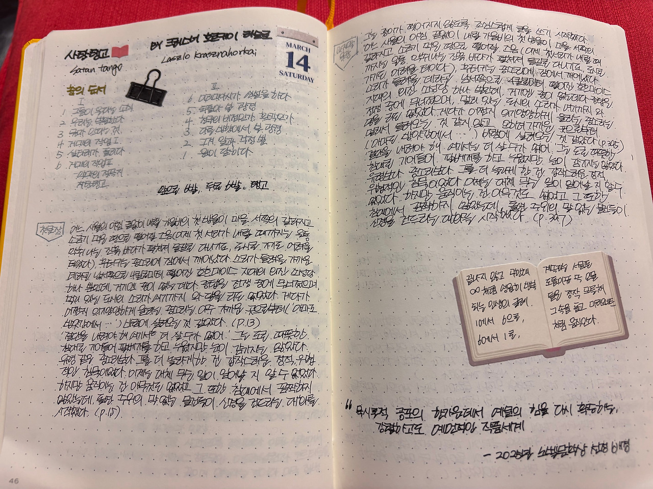 헝가리는 우크라이나와 국경을 맞대고 있다. 전쟁은, 사탄은, 이 순간도 우리에게 부지불식간에 찾아온다. 그 긴 시간이 지나 아직도 찾아오는 지옥의 모습은 작가에게 어떻게 느껴질까. 참담하다.