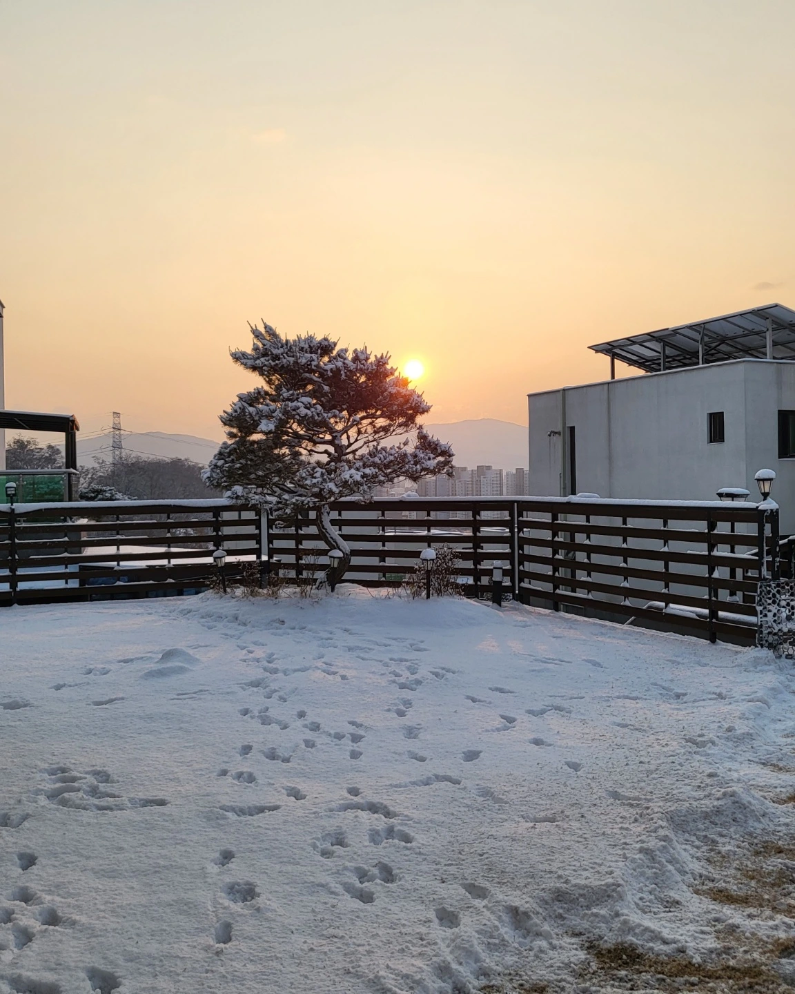 눈 온 다음 날, 해돋이(좌), 초승달과 노을(우)