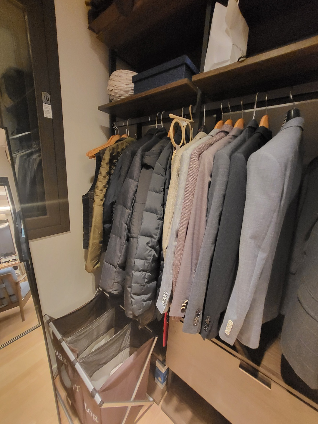 기본적으로 계절별로 분류했다. 그 뒤 정장 따로, 셔츠 따로, 바지 따로, 집에서 잘 입고 작업할 때 입는 옷 따로 걸어두었다. 그렇게 분류만 해서 걸어도 반 이상은 성공한 것 같다. 옷을 분류해서 걸어두었더니, 정리가 훨씬 더 잘 되어 보인다.