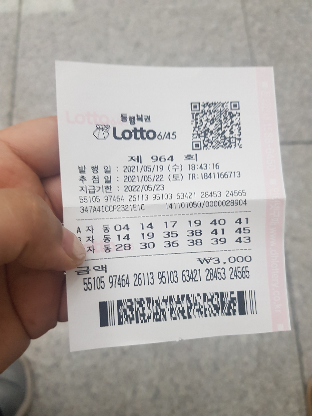 내가 산 로또 종이