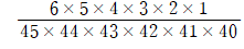 분모에는 45개 중에 6개를 뽑는 경우의 수를 놓고, 4개는 당첨번호(6가지 숫자)에서 뽑고, 나머지 2개는 당첨되지 않은 번호(39개(45-6)의 숫자)에서 뽑으면 됩니다.