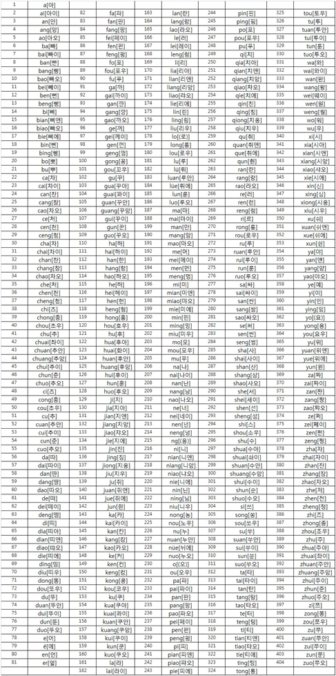 둘 다 보았다. 다만 아쉬운 것은 f 발음과 sh, ch, zh 발음이다. ㅍ, ㅅ, ㅊ, ㅉ으로 표현했지만 p, s/x, q, j/z로 표현되는 발음기호와 구별하기가 어렵다. 옛 고어에서 사용하던 걸 차용하면 좋겠지만 현재 사용하지 않은 자음이니... 어쨌든 한글을 이용하여 중국어를 쓰고 배우는 것이 훨씬 편했던 것은 사실이다.