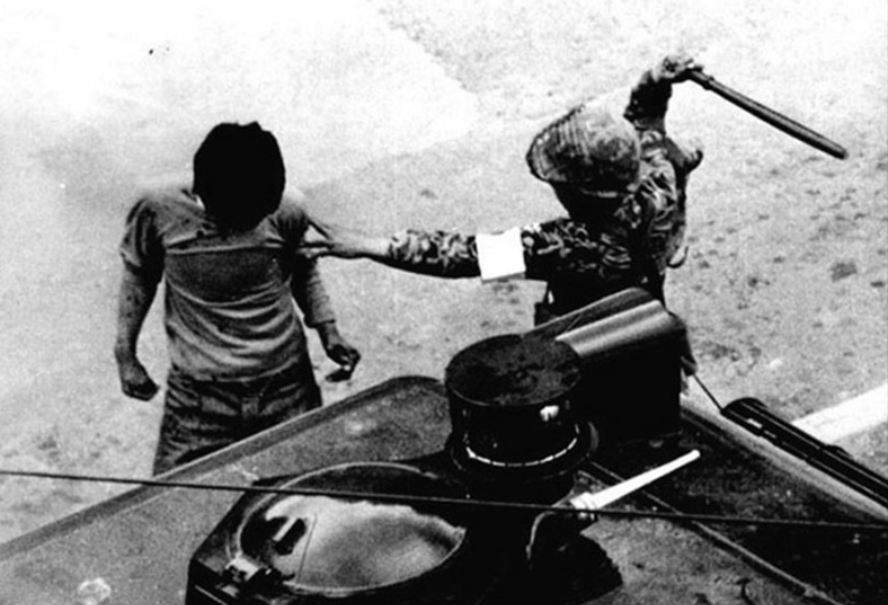 당시 현장에서 학생들을 쏜 지휘관이 양심선언을 한다는 뉴스가 들려온다.