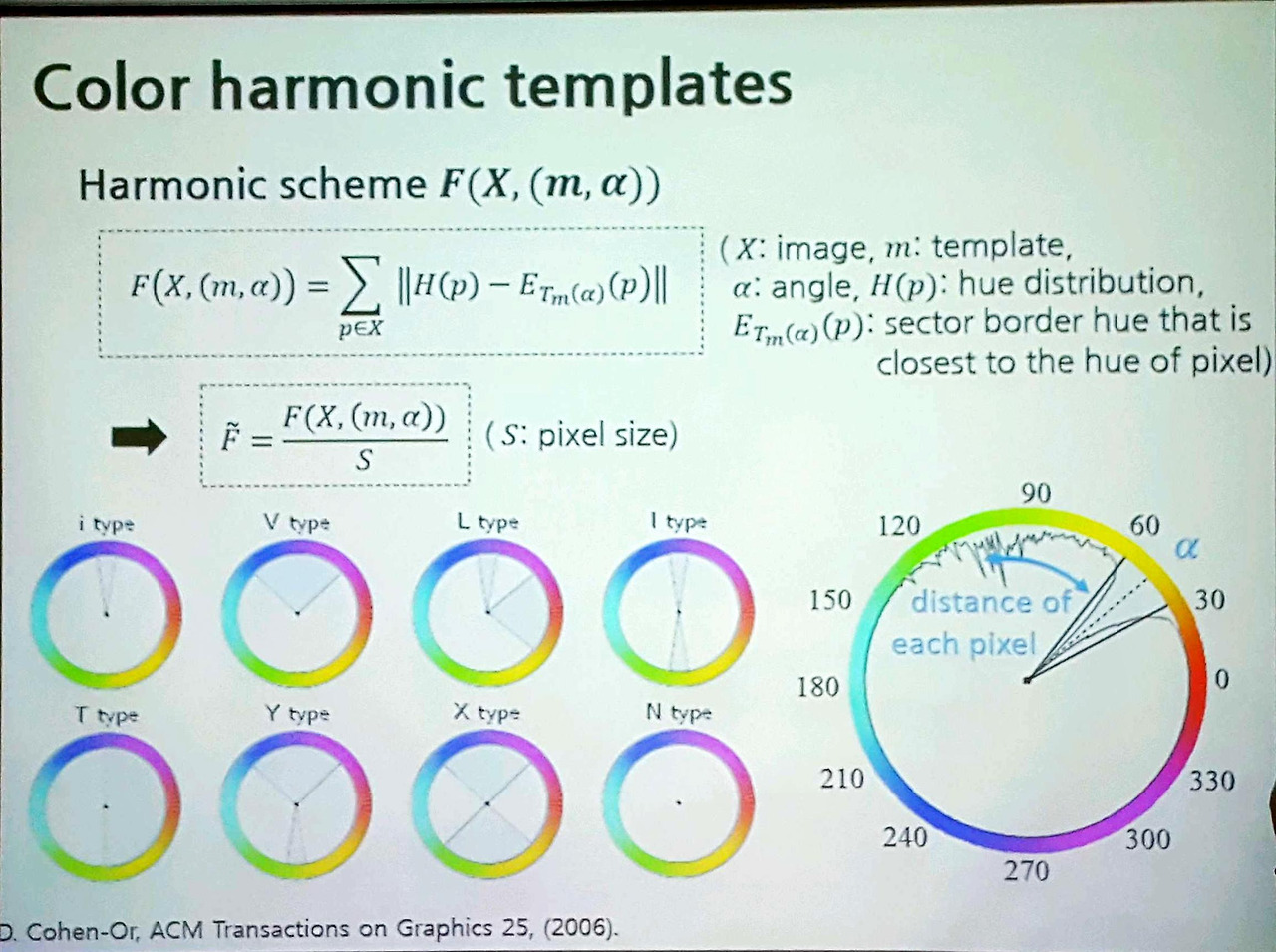 각 위치별로 360도로 회전하면서 어떤 색들이 존재하고 그 두 색 간의 차이를 데이터 분석하여 인간의 '조화롭다'라는 감정을 어떻게 느끼는가에 대한 연구인데, 인간의 감정을 이해하는데, 빅데이터를 사용했다는 점에서 앞으로 인공지능, 로봇 등에 어떻게 인간의 감정을 느끼게 하고, 이해하게 할 수 있는가를 알려줄 수 있는 단초가 되는 연구라고 생각하였다.