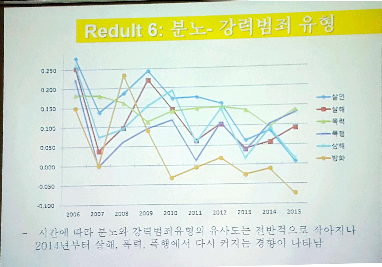사회적인 문제를 빅데이터 분석하는 연구로 기존 정신분석, 심리학적인 방법이 아닌 언론에 나오는 범죄 기사들을 분석하여 '우발적으로 생겨난 분노가 범죄로 연결되는 것'을 설명하는 연구였다.