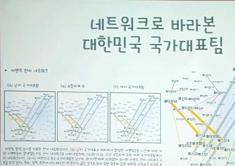 여러 분석 기법을 사용하여 결론적으로 남녀 국가 대표 선수들이 감독과 상관없이 측면 공격 위주의 패턴이라는 것이었다. 원래 축구를 하다 보면 측면 공격이 정면보다 성공 확률이 높아서 이런 결론이 난 것인지, 다른 나라 분석도 한다고 하니 다음 연구가 기대가 되었다.