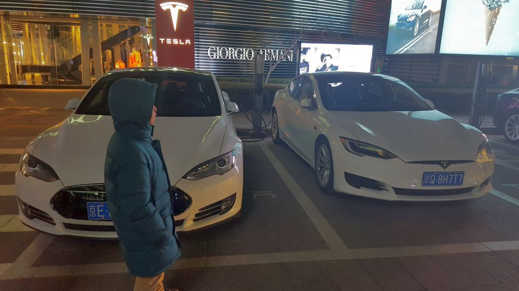 아래 사진은 북경에서 테슬라 두대가 충전 중인 모습