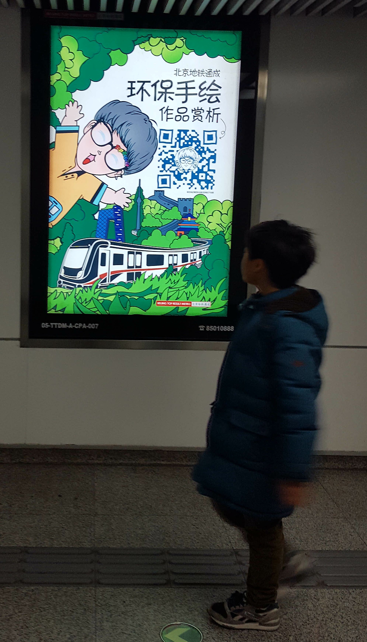지하철이든 버스 정류장이든 광고판 중앙에는 QR 코드가 들어가 있다. 약간 일본 분위기의 광고 이미지가 낯설다.