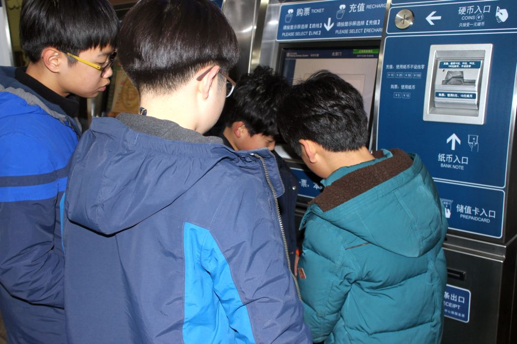 아래는 지하철역에 표 사는 매표소가 없이 자동 매표기 앞에서 아이들이 직접 표를 사는 모습