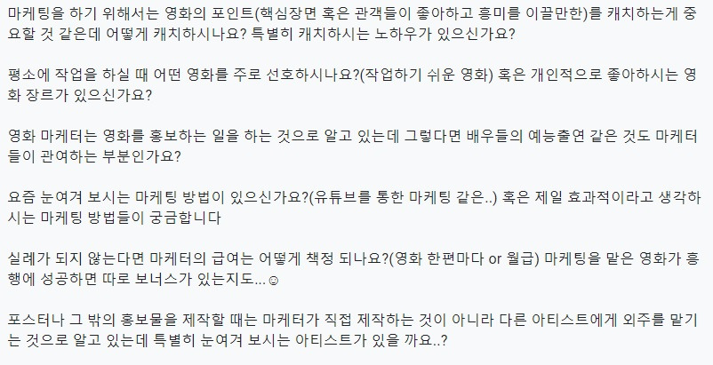 친한 친구에게 즐거운 제안을 받았다. 친구는 10대 청소년들이 학교 밖에서도 다양한 놀이와 배움을 통해 경험을 확장해나갈 수 있도록 돕는 벤처 기관에서 일하고 있었다. 그곳에서 '영화'와 '마케팅'에 관심이 있는 10대 친구들에게 일일 워크숍을 해달라는 제안이었다.