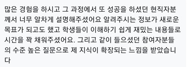 - 워크숍을 마치고 후기를 남겨준 참석자 -