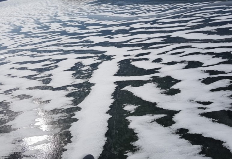 빙판 위로, 밤새 흩날린 1cm가량 백설이