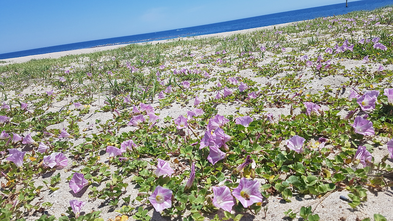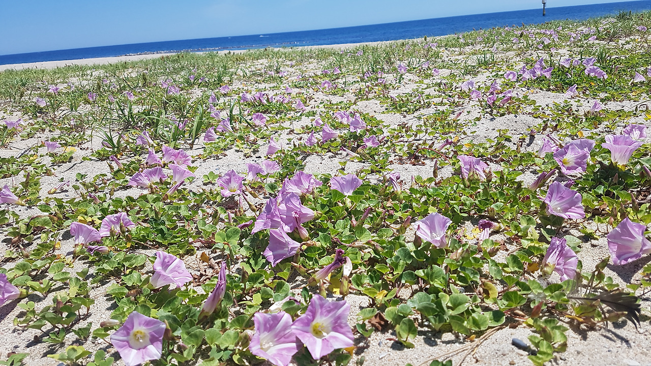해안가에 갯메꽃이 한가득 피었다. 하늘과 바다 저토록 푸른 그리움을 향하여..