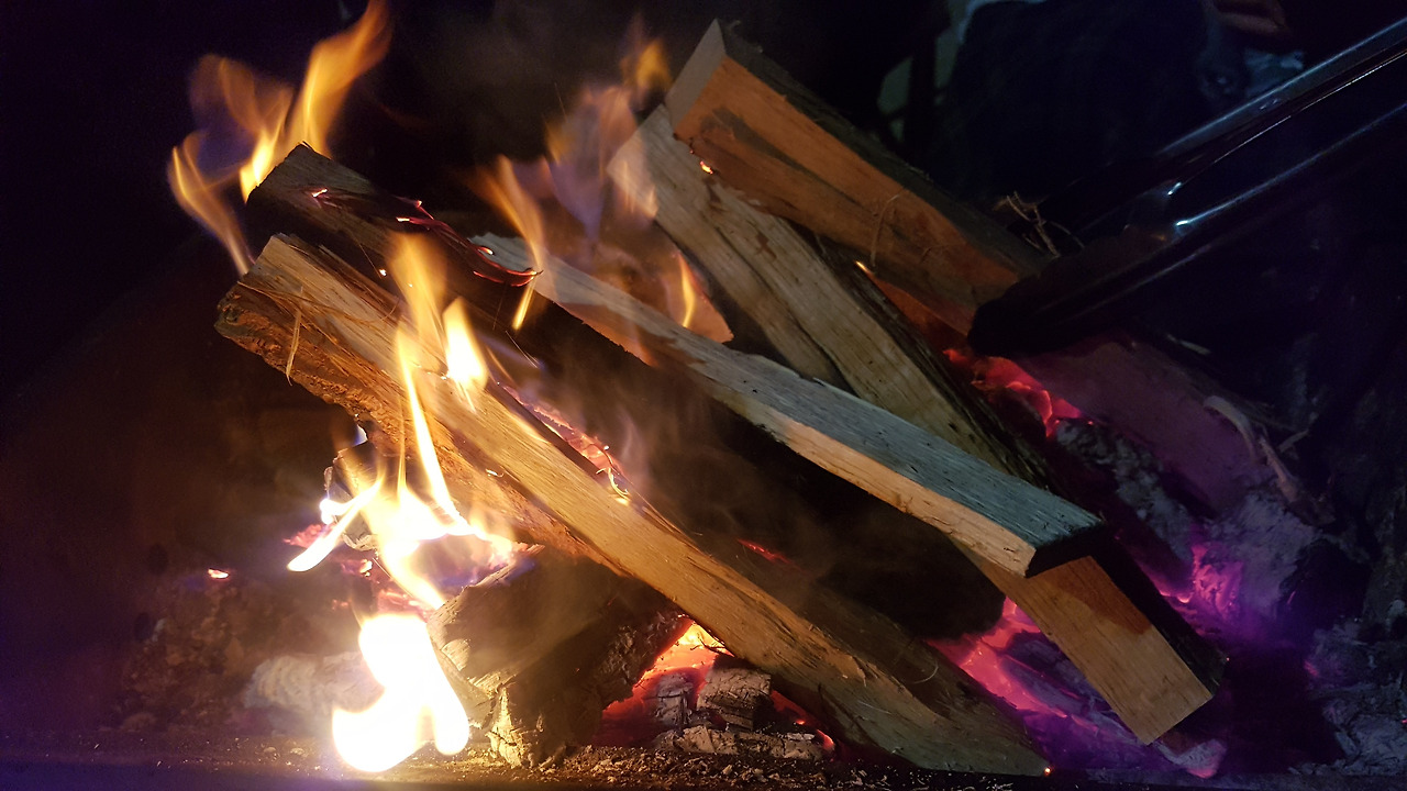 오늘은 크리스마스이브, 산 아래 마을에서 제일 높은 집으로 어둠이 깃든 골목을 더듬어 찾아갔다. 편백나무 리모델링 한 그 집 마당에는 모닥불이 타닥타닥 타오르고 테이블에는 하얀 크리스마스트리 와인 초콜릿 케잌이 차려져 있다. 깊숙한 밤하늘이 내려보낸 별빛과 모닥불 불꽃이 튀어 올라 서로 만나는 묘한 분위기를 그저 불멍, 바라보았다. 내 안에 고인 사랑 용기 온기 모두 끌어모아 추억으로 직행하는 지금(present)은 선물(present), 추억이 태우는 불꽃은 꺼지지 않는다.