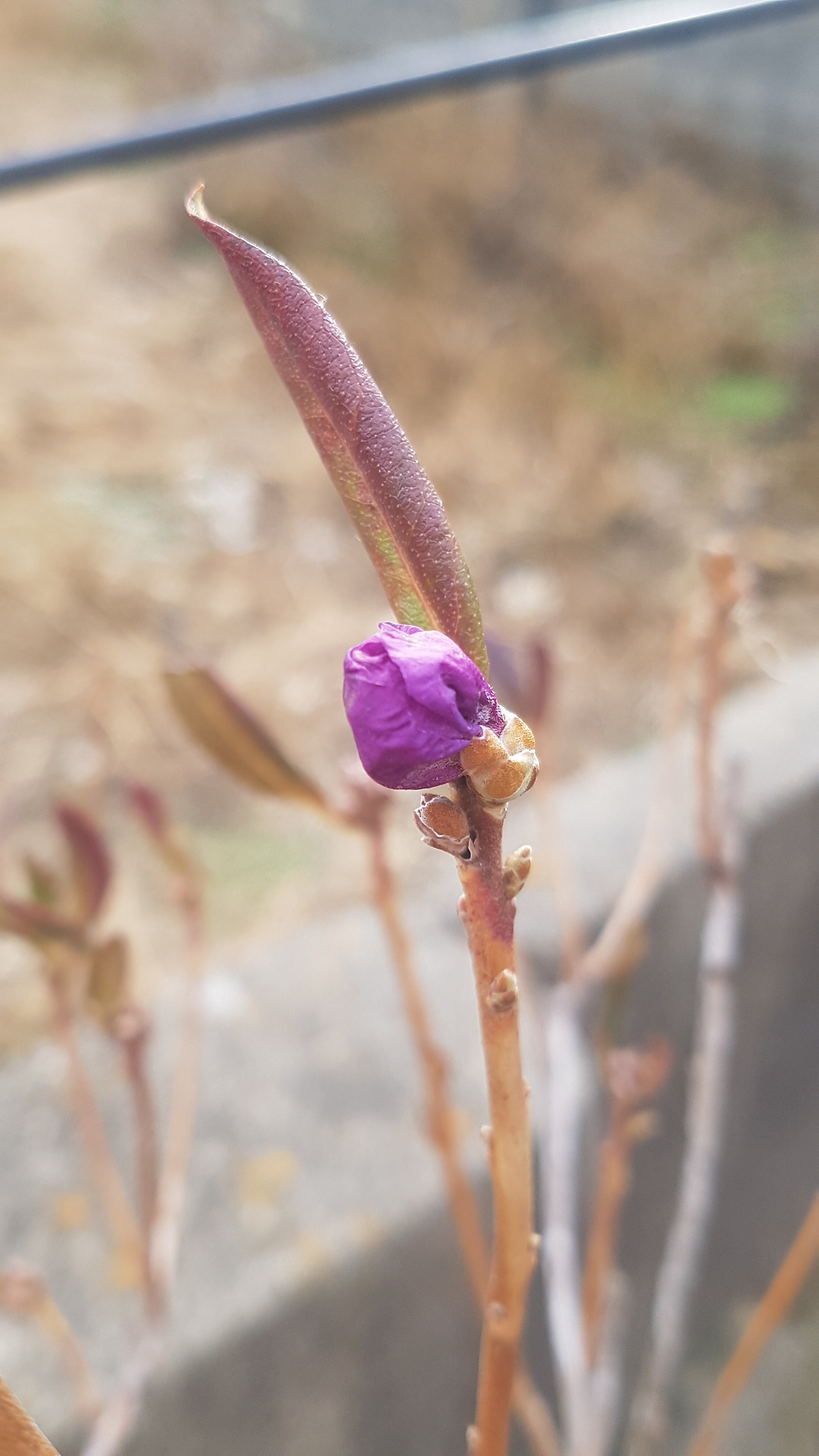 난류가 흐르는 내 고향 동해안은 한겨울에도 덜 추운 편이나 연일 기록적인 한파를 갈아치우는 요즘 오리 깃털 한 장 들어있지 않은 홑겹 고운 옷을 입은 진달래 꽃봉오리 앞에 서서 경외심이 든다.