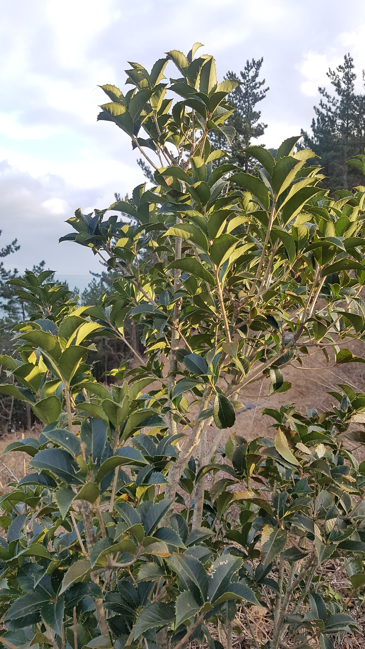 먹구름 사이로 날아온 한 줄기 빛이 이 나무를 더 은총이 깃들게 내리비춘다. 천리포수목원에서 처음 보았는데 고향에서 만나다니 신기할 따름이다. 이 나무가 꽃 피고 생장하는 모습을 앞으로 쭉 지켜보겠다. 나무 아래 누군가 다녀갔는지 싱싱한 줄기가 잘려 버려져 있다. 가지 두 개를 주워서 집으로 가져왔다. 화단 언 땅을 파서 비닐을 덮고 호랑가시나무 가지를 나란히 심어주었다. 이듬해 봄 뿌리를 내렸으면 하는 간절한 바람을 함께 심었다.