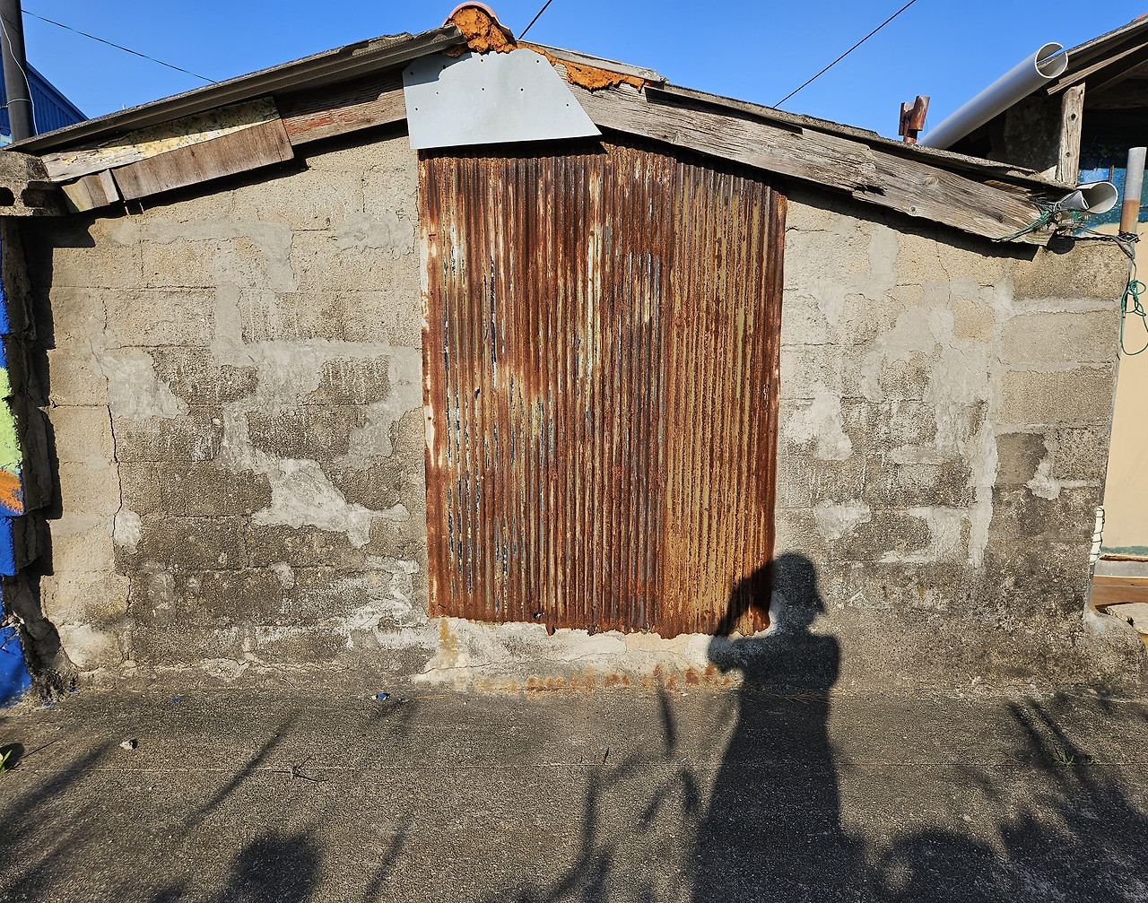 너무 빳빳하고 구김이 없는 새 옷으로 갈아입어서 아무 색도 칠하지 않은 이전의 모습이 오히려 더 유물 느낌 눈길을 끈다. 금세 내려앉을 듯 펑퍼짐한 이등변삼각형 지붕을 간신히 지탱하는 적갈색 양철 벽체는 쇠락해 가는 초저녁 햇살과 함께 잠시 멈춘 내 그림자를 압축해서 끌어당긴다. 나의 실상을 들키고 만 진회색 그림자가 못다 한 말을 대신 고백한다. 강렬하게 사로잡힌 지금 이 느낌을.