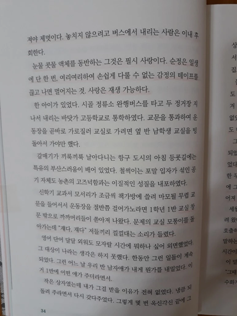 한 아이가 있었다. 시골 정류소 완행버스를 타고 두 정거장 지나서 내리는 바닷가 고등학교로 통학하였다. 교문을 통과하여 운동장을 곧바로 가로질러 교실로 가려면 옆 반 남학생 교실을 빙 돌아서 가야만 했다.