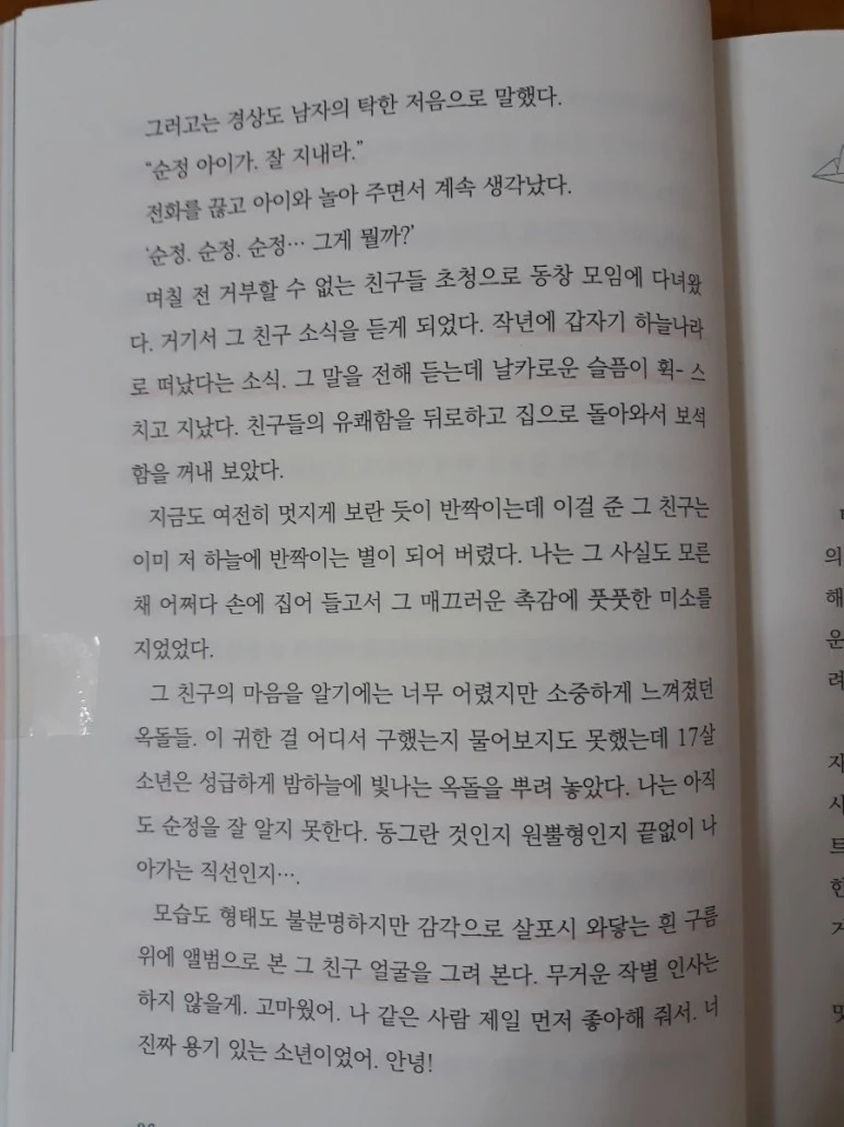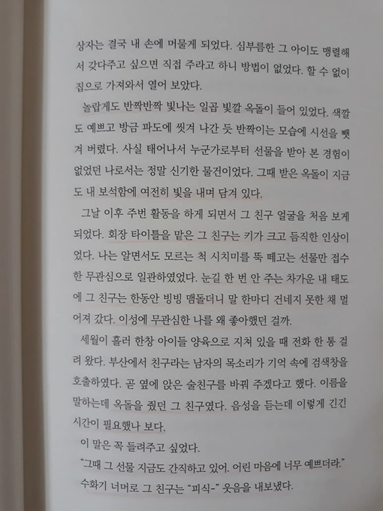 "그때 그 선물 지금도 간직하고 있어. 어린 마음에 너무 예쁘더라." 수화기 너머로 그 친구는 "피식-" 웃음을 내보냈다.