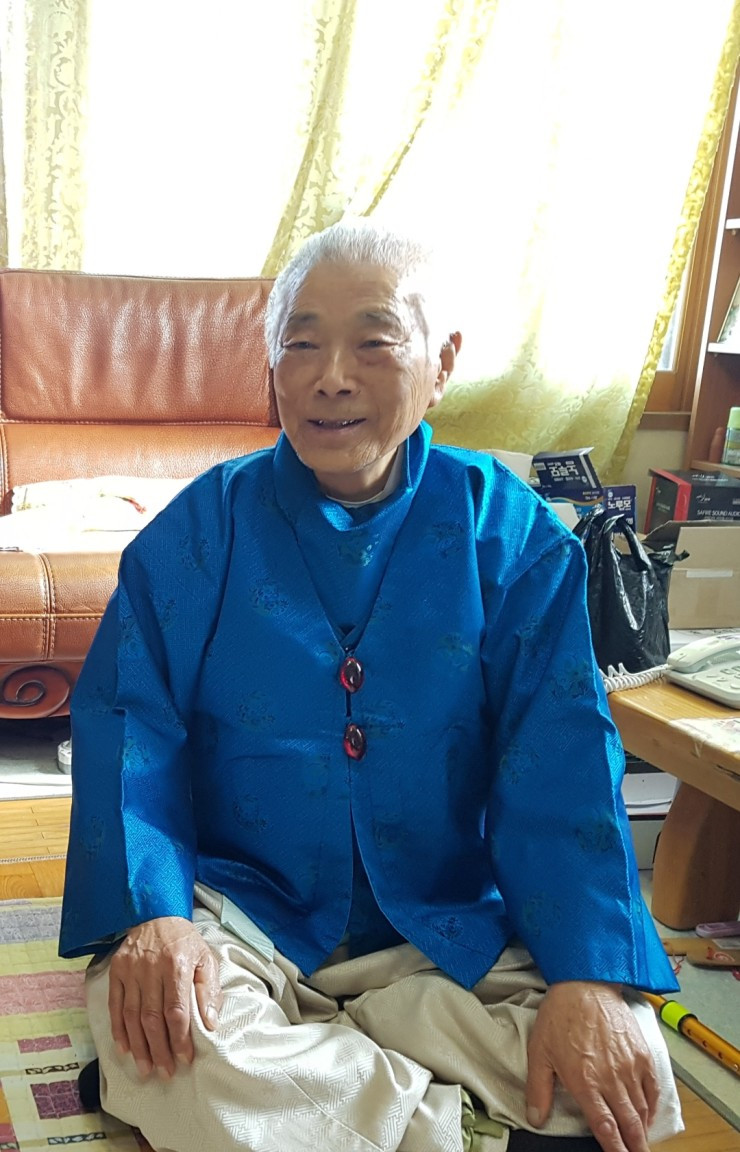 페르시안 블루보다는 투명한 푸름이 넘실대는 이 비단 마고자는 푸른 물이 뚝뚝 떨어지는 유월의 젊은 바다를 떠다 놓았다. 이 푸른 물로 세수하면 거친 피부가 탱글탱글 물기가 차오르면서 순식간에 주름이 사라지는 젊어지는 샘물이다. 이 마고자를 입은 아버지는 언제나 젊다.