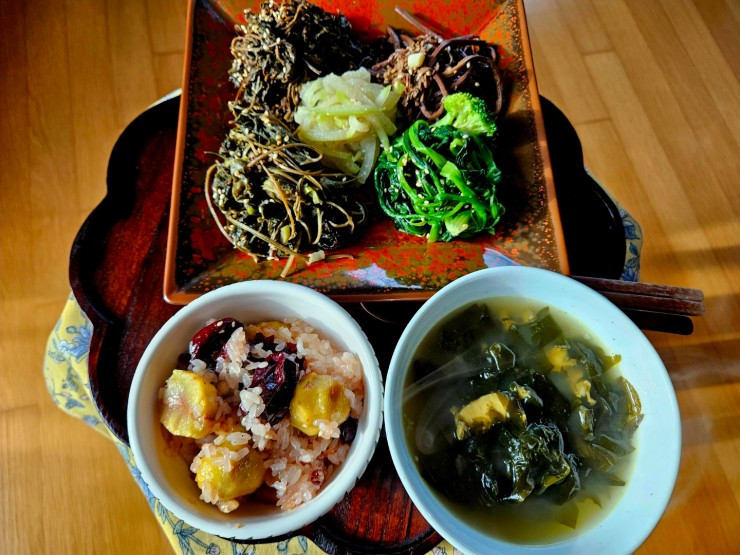이것도 음식이 될까 의구심을 돋우는 말라비틀어진 취나물 다래순을 물에 불려 푹 삶았다. 타래 튼 고사리도 부드럽게 삶아서 들기름 참기름 국간장으로 볶고 달맞이하는 저녁 무렵 태어났다는 생일 미역국도 끓였다. 붉은팥, 잣, 대추, 밤을 넣은 찰밥도 한 솥 가득 뜸 들였다.