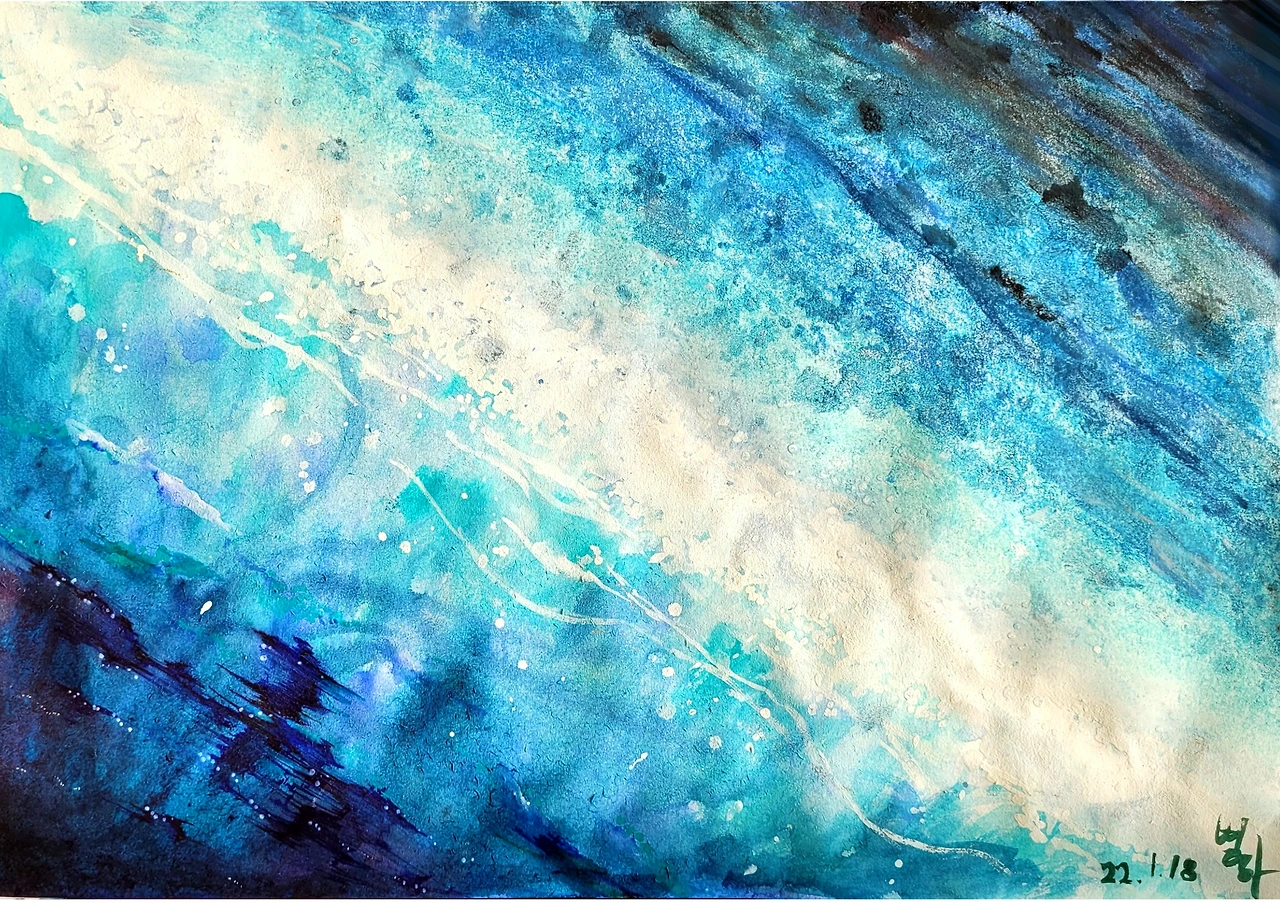 메인 오브제는 우주와 바다입니다. 심해는 우주의 모습과 흡사했고, 긴 백사장에선 은하수가 보였습니다. 파도에 의해 바위가 부서집니다. 시간이 흐름에 따라 작고 반짝이는 모래가 되어 밀려 나오겠지요 속에 가라앉아있는 괴로운 일들도 그렇게 부서지면 내가 지나 온 길들도 반짝일 수 있을까 하는 마음을 담게 되었습니다. 파도에 밀려 나오지 못해 가라앉은 마음들은 우주의 성운처럼 부서진 것들이 모여 새로운 별로 탄생할 수도 있습니다. 언젠가 같은 아픔으로 되돌아가게 됐을 때, 더 이상 어두운 길이 아니길 바랐습니다.