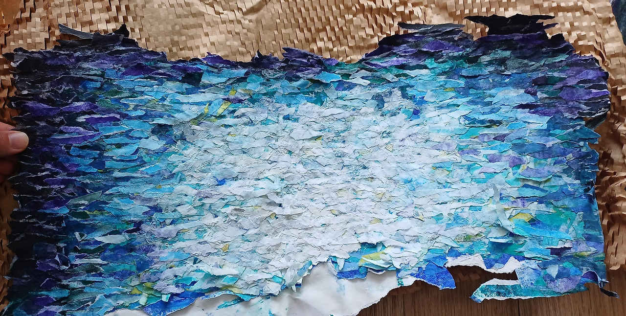 모자이크 기법으로 작업 한 이유는 가볍고 조용히 서서히 쌓여 내가 잠식되어 있는지도 모르게 가라앉은 모습을 표현하고 싶었기 때문입니다.