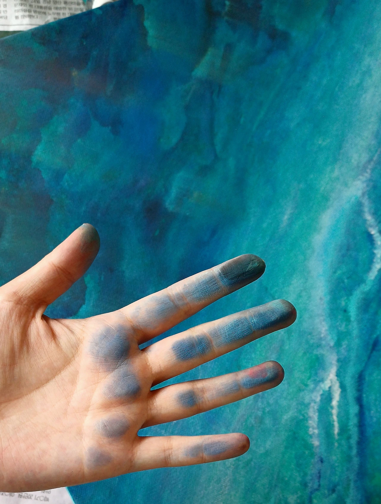 베이스 작업이 끝나고 나면 장갑을 껴도 물이 듭니다.