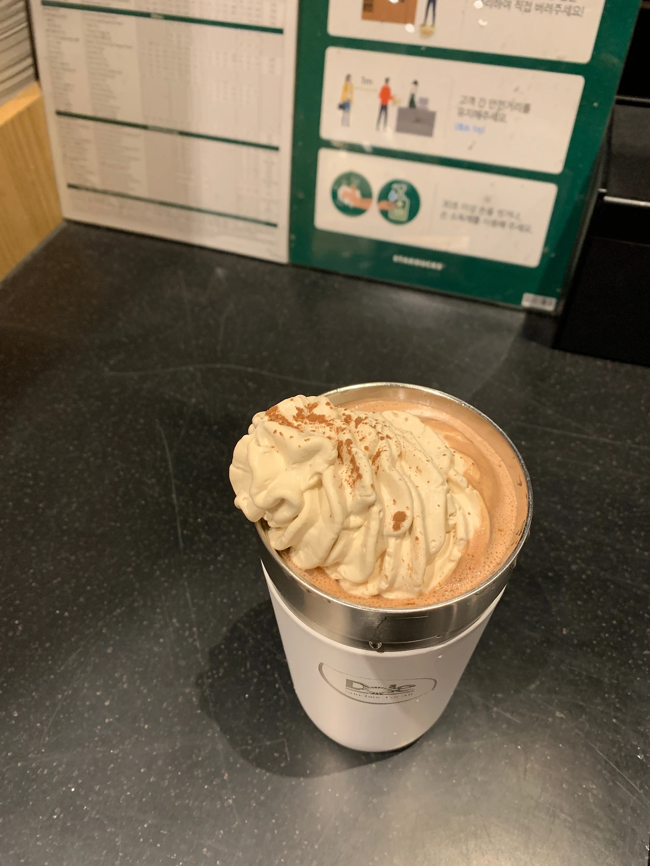사실 핫초코맛은 뭐 미떼나 자판기나 큰 차이는 모르겠으나, 에스프레소 휘핑크림이 맛있음.