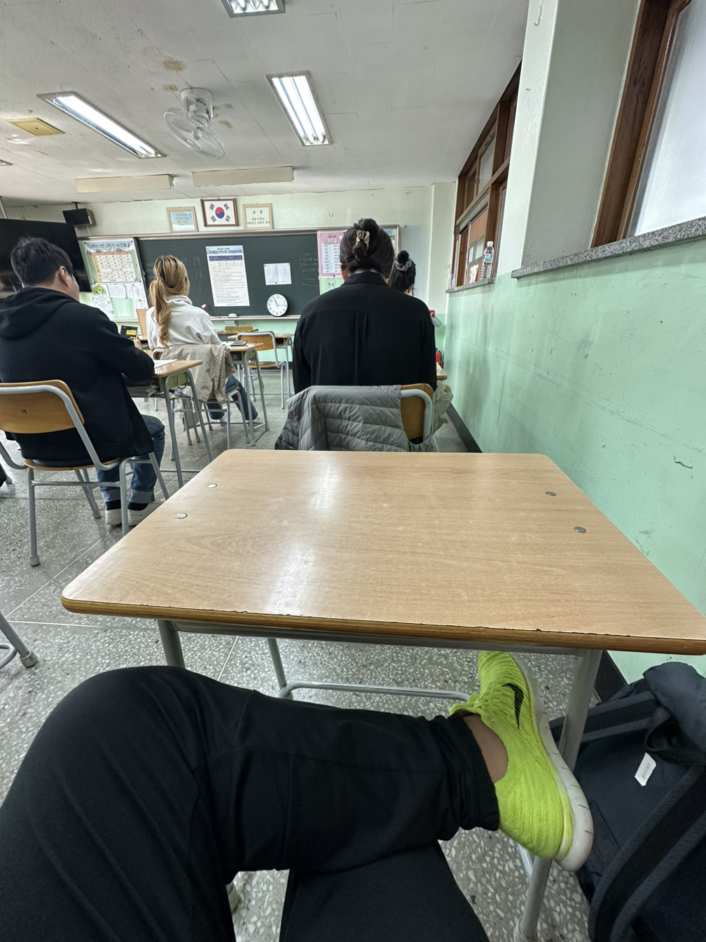모처럼 시험 보러 왔는데, 시험장은 30년 전보다도 변한 것이 없다. 아직도 이 책상과 의자를 쓰고, 아직도 칠판에 분필이라니....